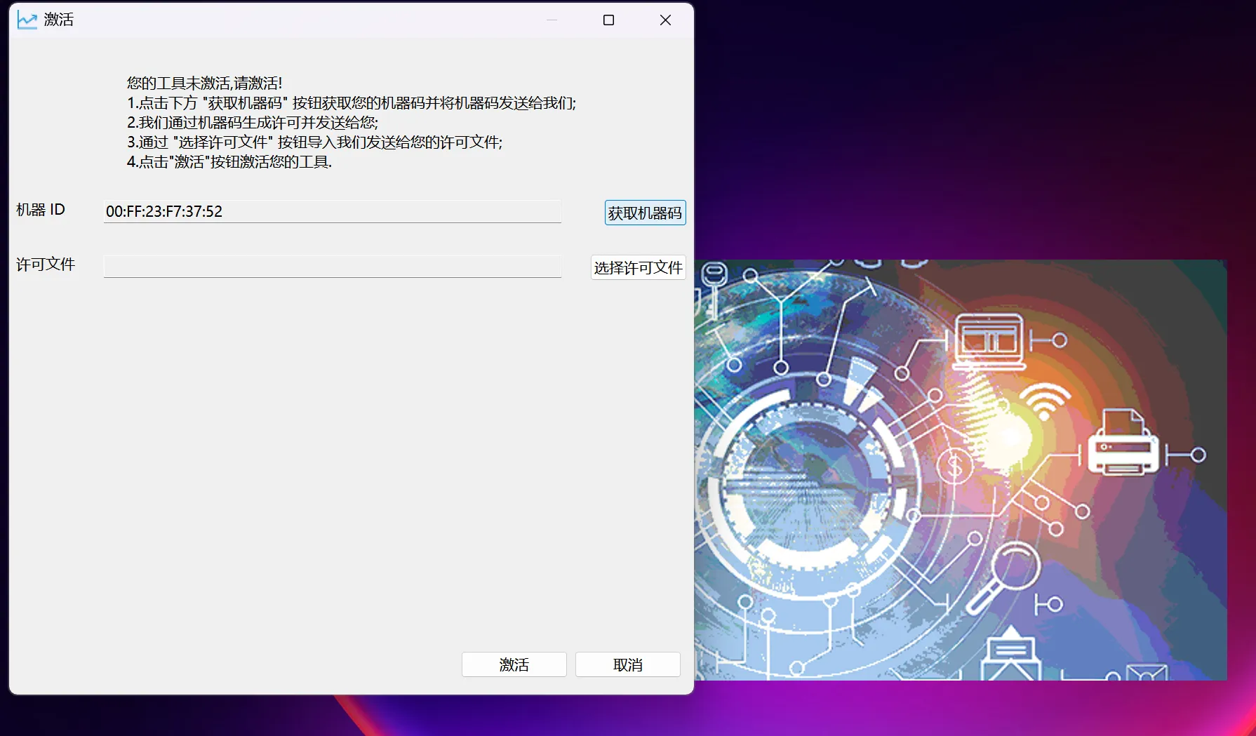 该评估改写工具启动需使用授权文件,点解“获取机器码”自动获取本机机器码,需将该机器码提供给瀚高开源研发同事,由瀚高同事申请.lic格式文件。以下“许可文件”位置选择.lic文件即可打开瀚高评估改写工具。