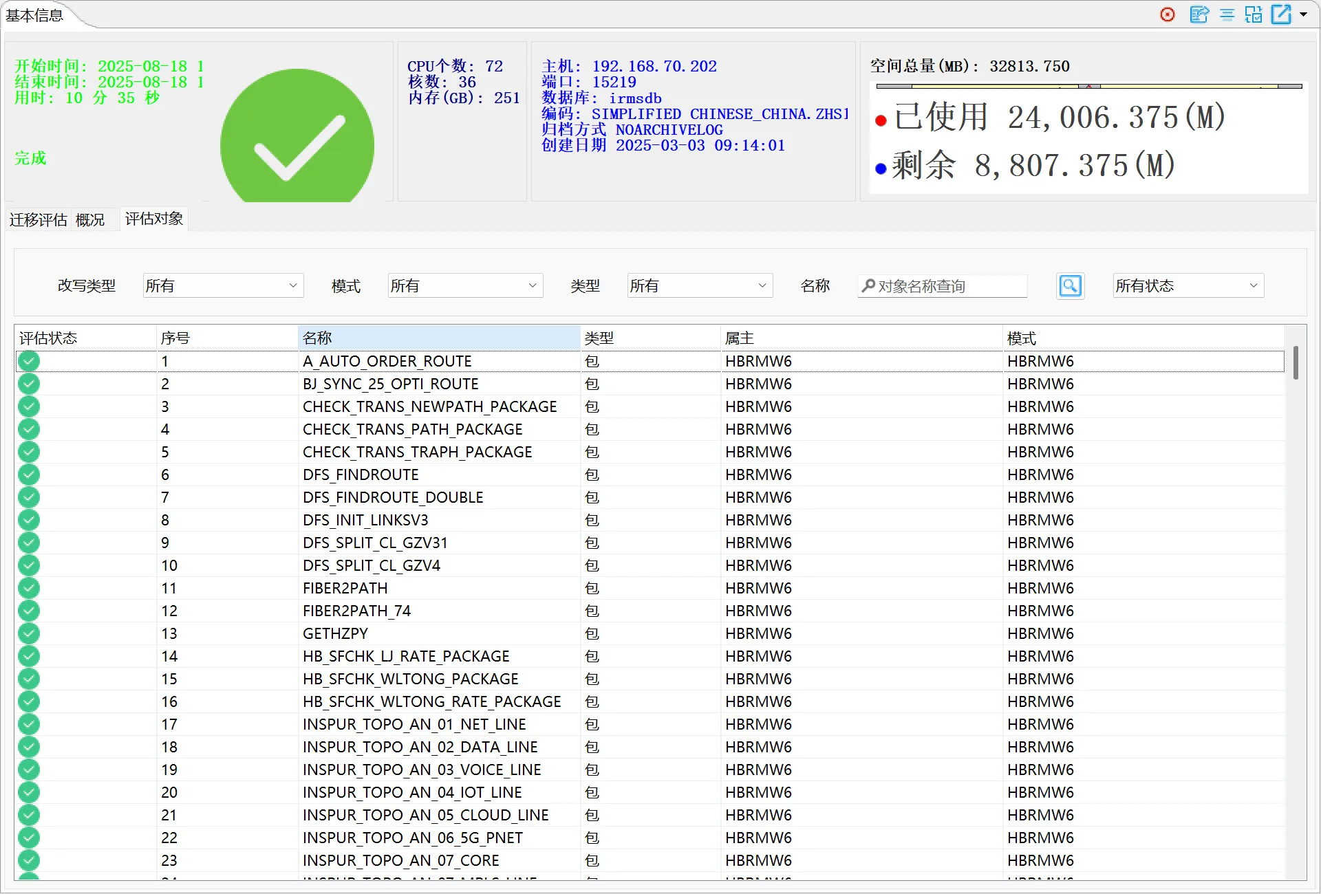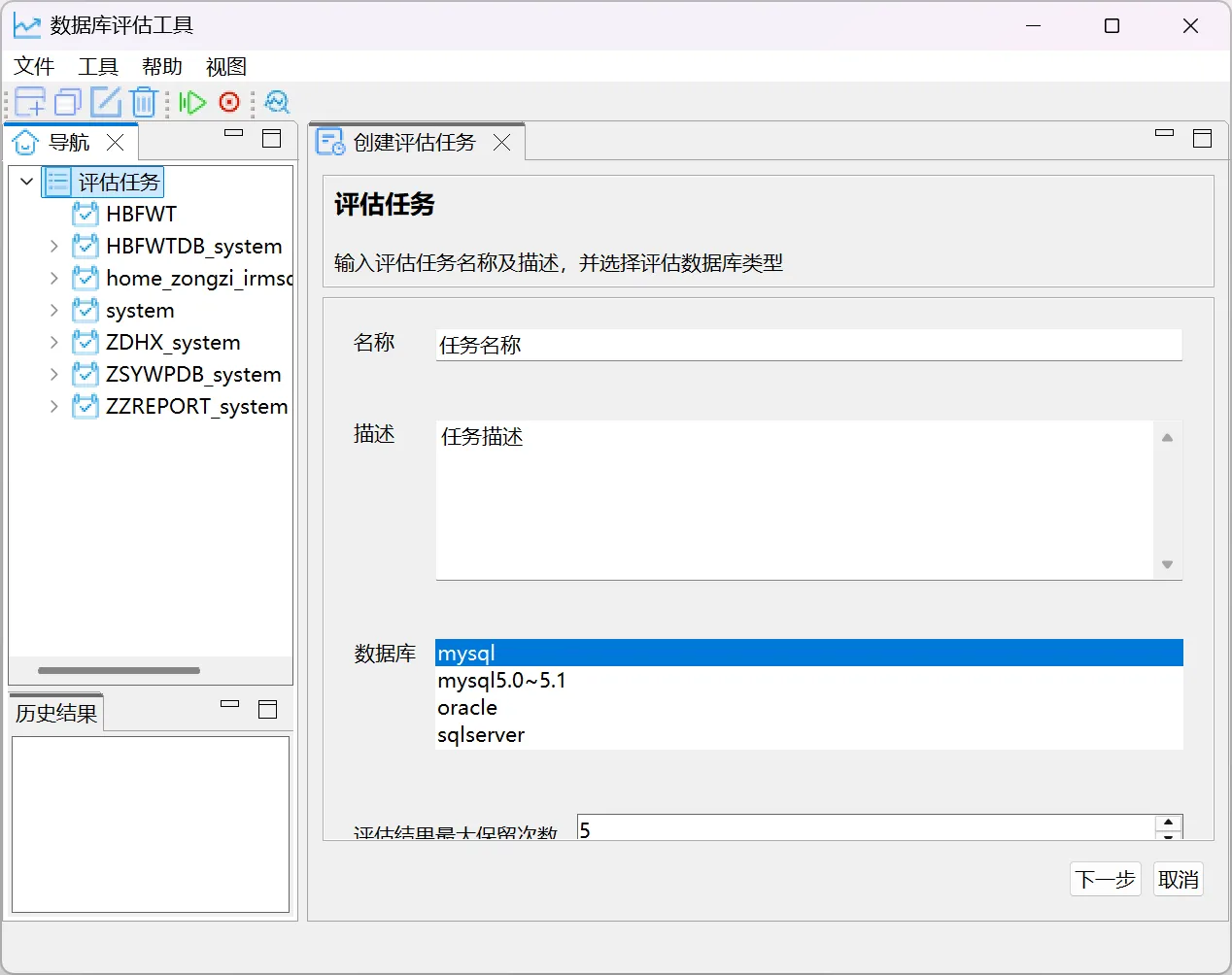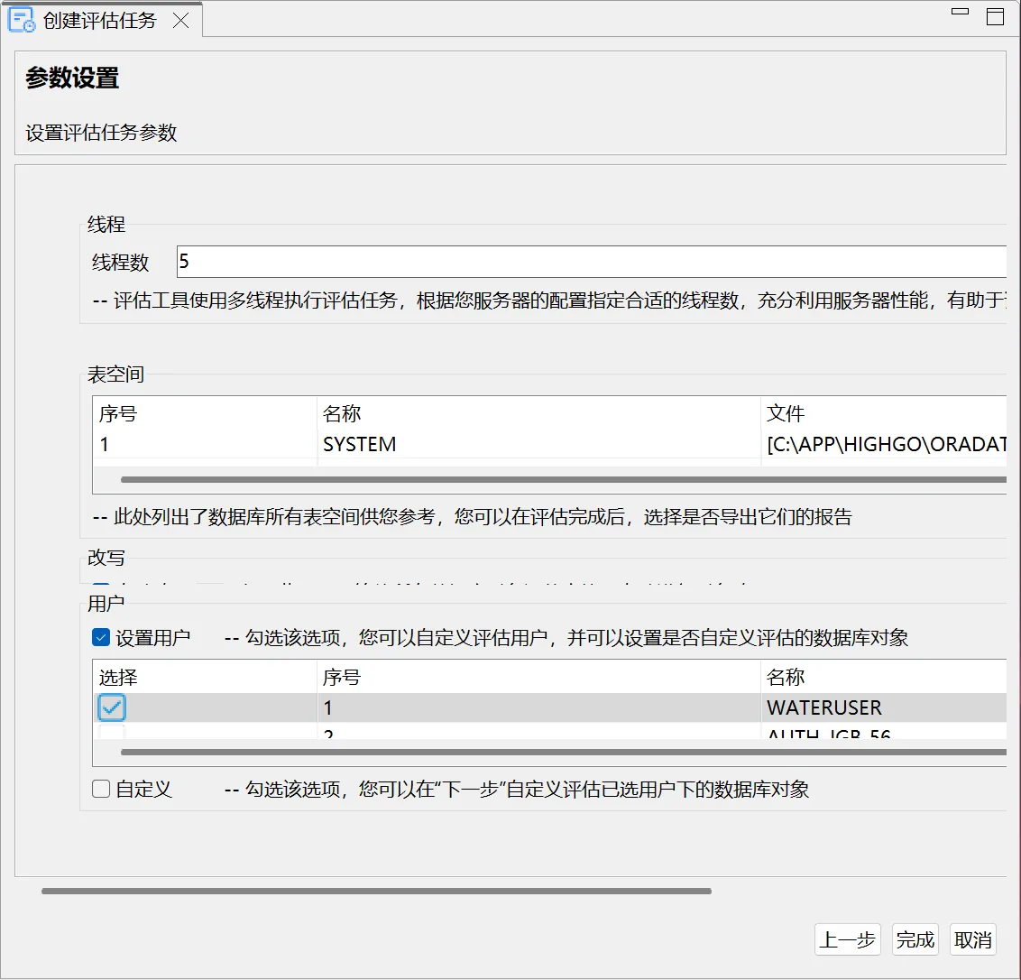 执行评估任务是指评估工具根据评估任务配置,对所配置的数据库进行查询、分许的过程,并最终给出分析、评估结果的功能。工具在执行评估任务时,会实时更新当前正在评估的数据库对象、评估用时、评估开始时间等评估状态信息,评估任务主要包括以下:
