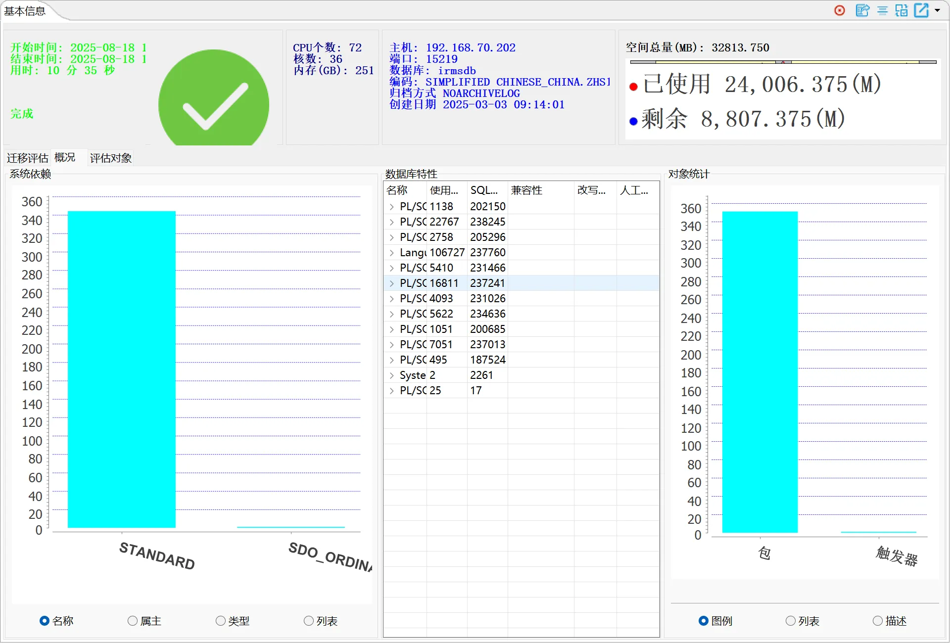| 评估数据库基本信息 |