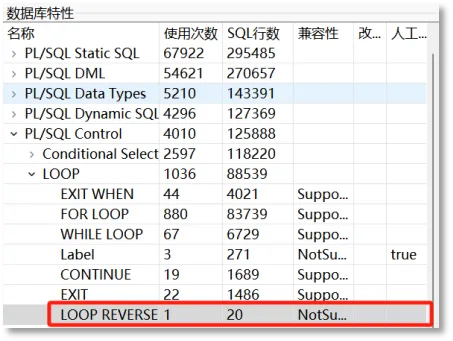 显示评估数据库中数据库对象所使用到的数据库特性 |