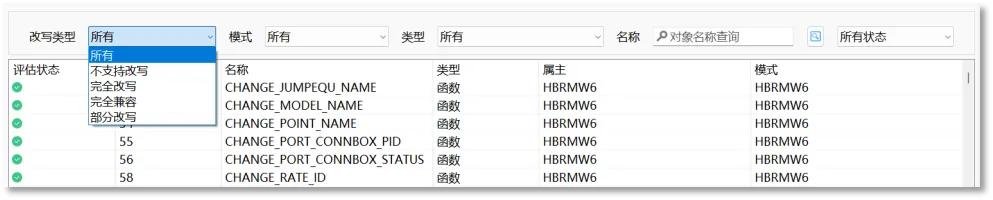 自定义对象改写是指对评估结果列表中所有的数据库对象,进行单个或多个对象改写。