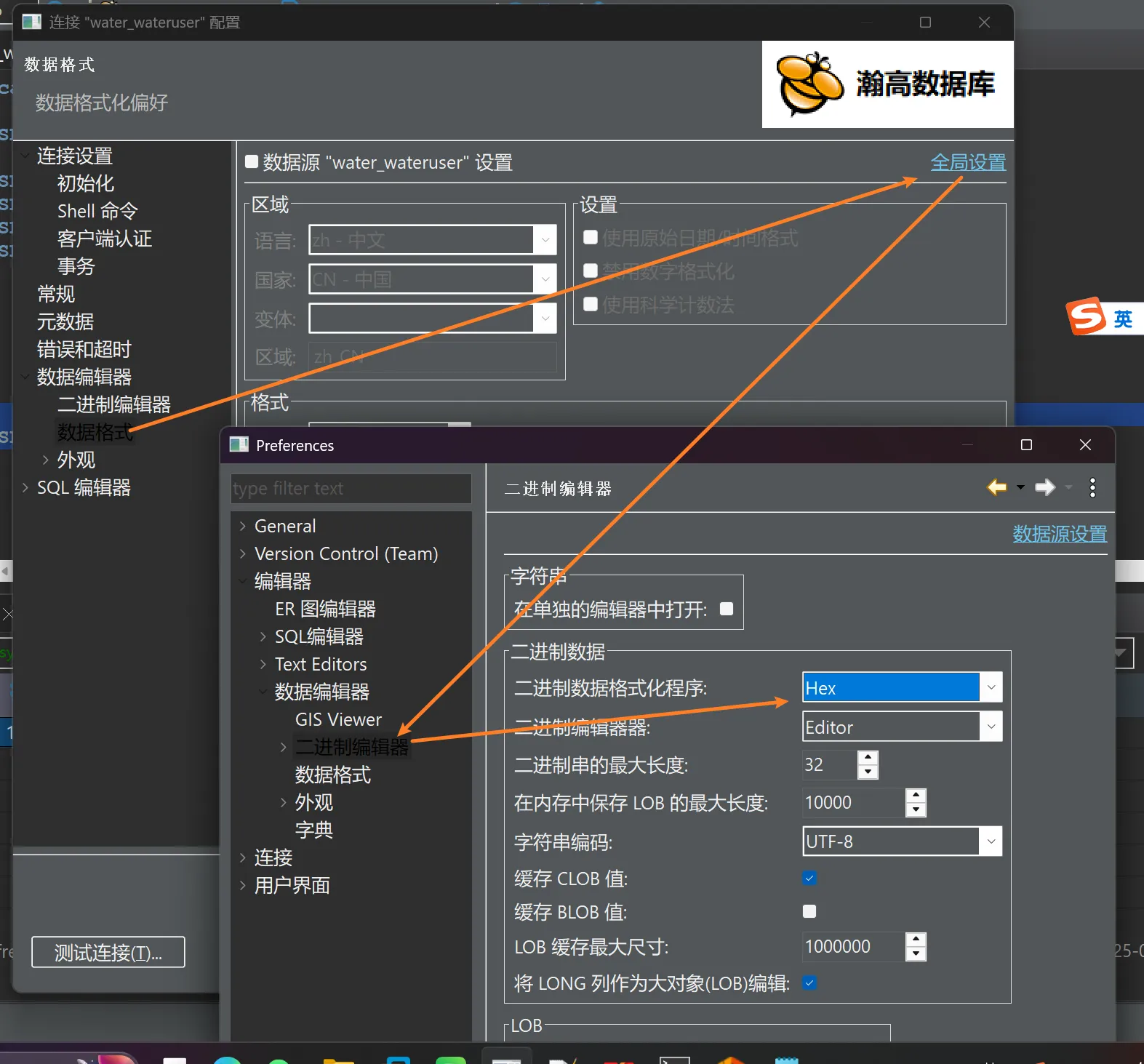 1.右键编辑链接=>数据编辑器(数据格式)=>全局设置=> 二进制编辑器 => 二进制数据格式化程序 =>改为Hex