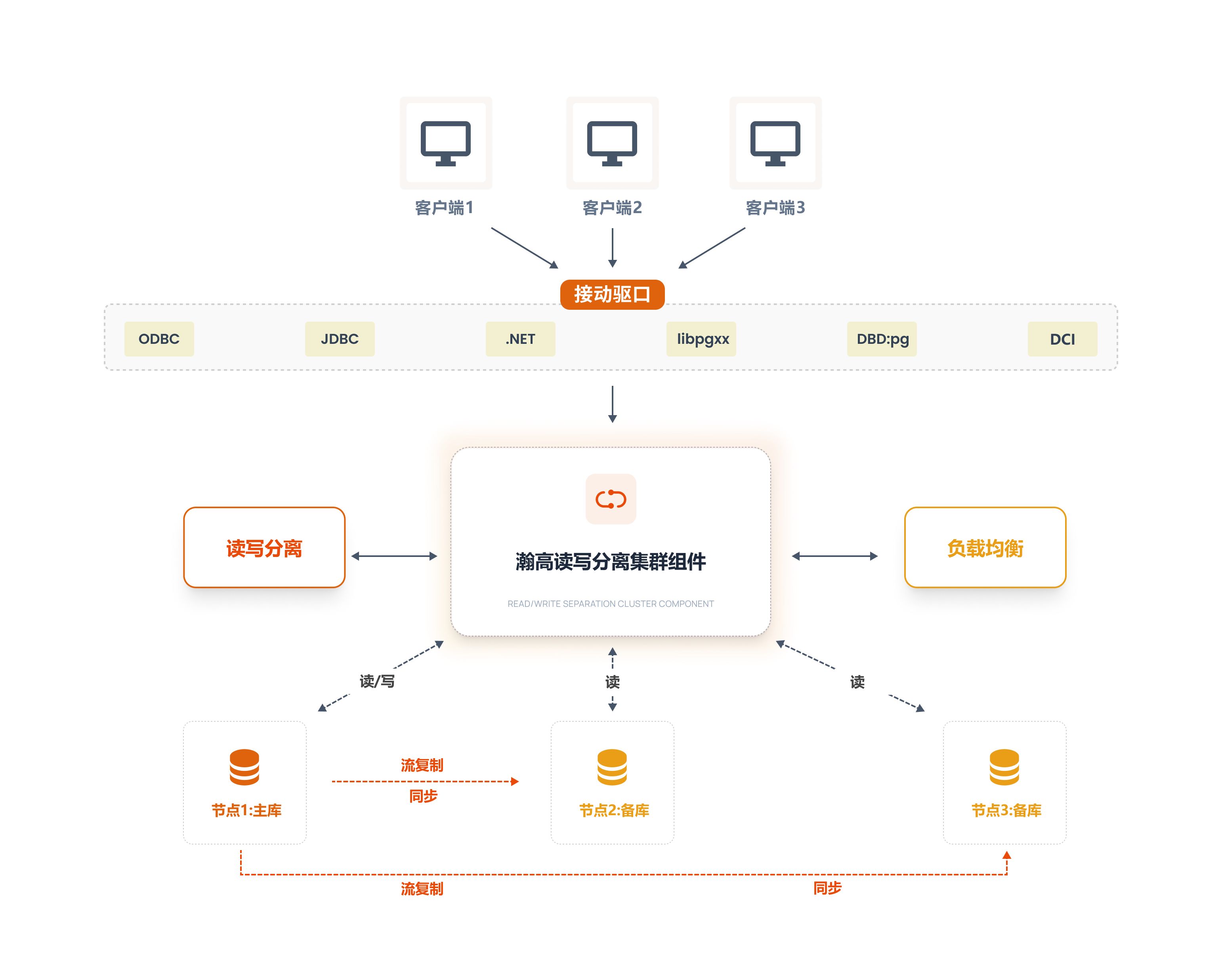 瀚高读写分离集群软件V6.0是一款专为瀚高数据库设计的高性能中间件,工作在数据库服务器与客户端之间,提供连接池、读写分离、负载均衡等功能。它通过识别 SQL 请求类型,将读操作路由到只读服务器,写操作转发到读写服务器,实现透明的读写分离,提升数据库性能。同时,瀚高读写分离集群软件V6.0支持连接复用,减少连接开销,并能检测服务器故障,自动切换路由,确保系统稳定运行。其透明代理特性使应用程序无需修改即可适配读写分离架构,是优化数据库集群性能的理想选择。