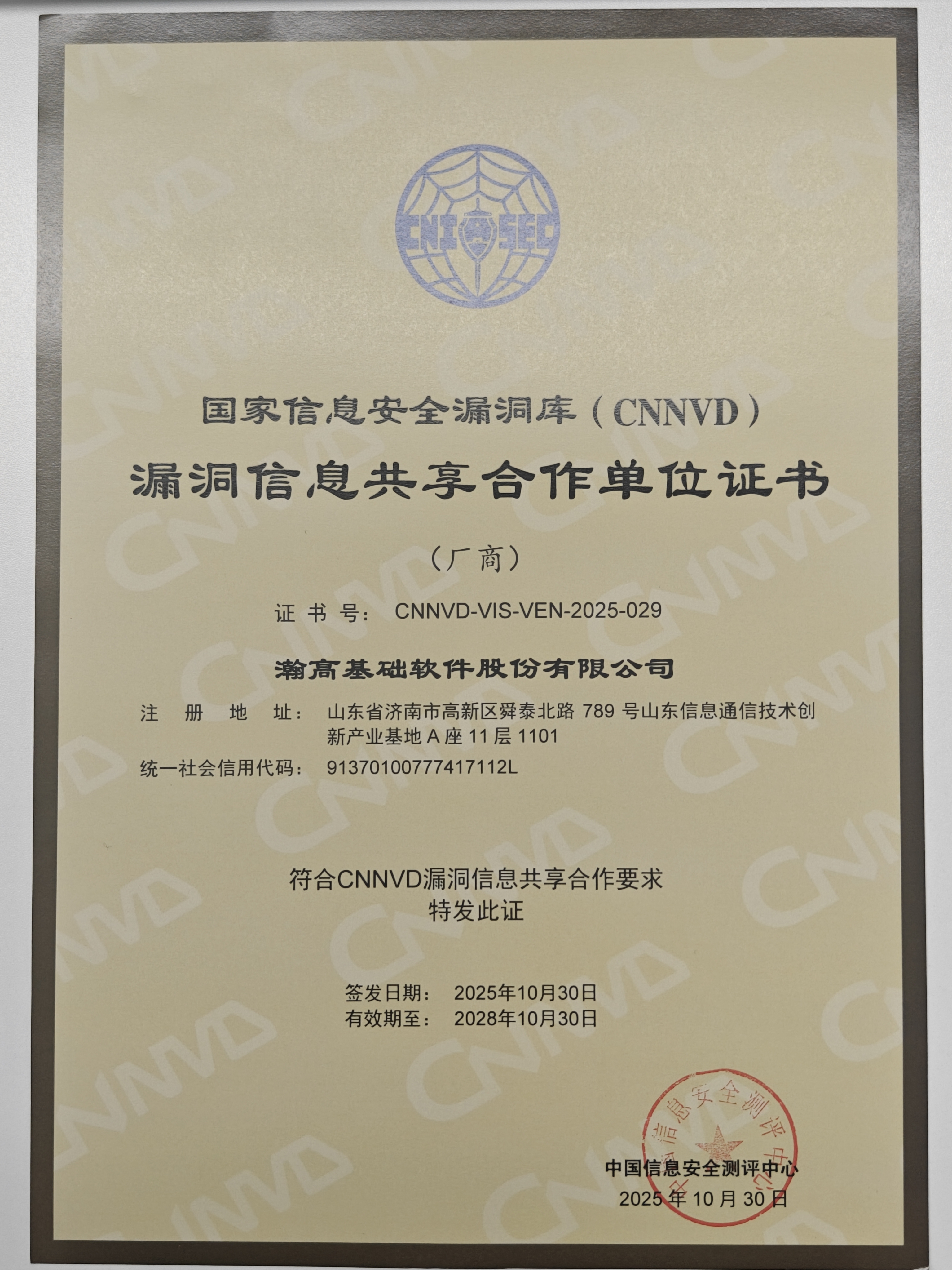 随着数字化进程不断深入,网络安全已上升为国家战略的重要组成部分。瀚高数据库将进一步深化与国家漏洞平台、行业伙伴及开源社区的协作,持续聚焦漏洞治理、风险评估、智能防御等重点技术方向,为构建安全、稳定、可靠的数据库产品体系,推动我国网络安全产业高质量发展贡献力量。
